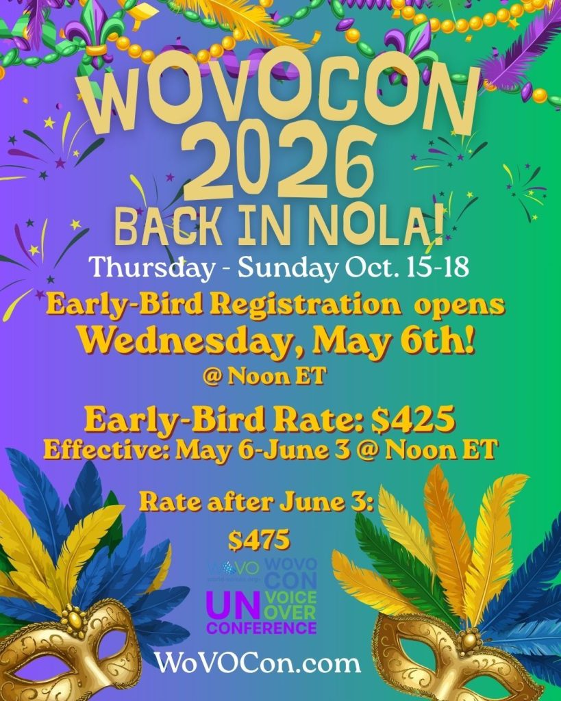 Importantly, what happens at the WOVOCON Voiceover Unconference, stays there. Because participants are sharing their valuable and sometimes confidential business experiences and knowledge, we respect that sensitivity by forbidding any video or audio recording of any sessions at WOVOCON. To learn from us, you must be with us.